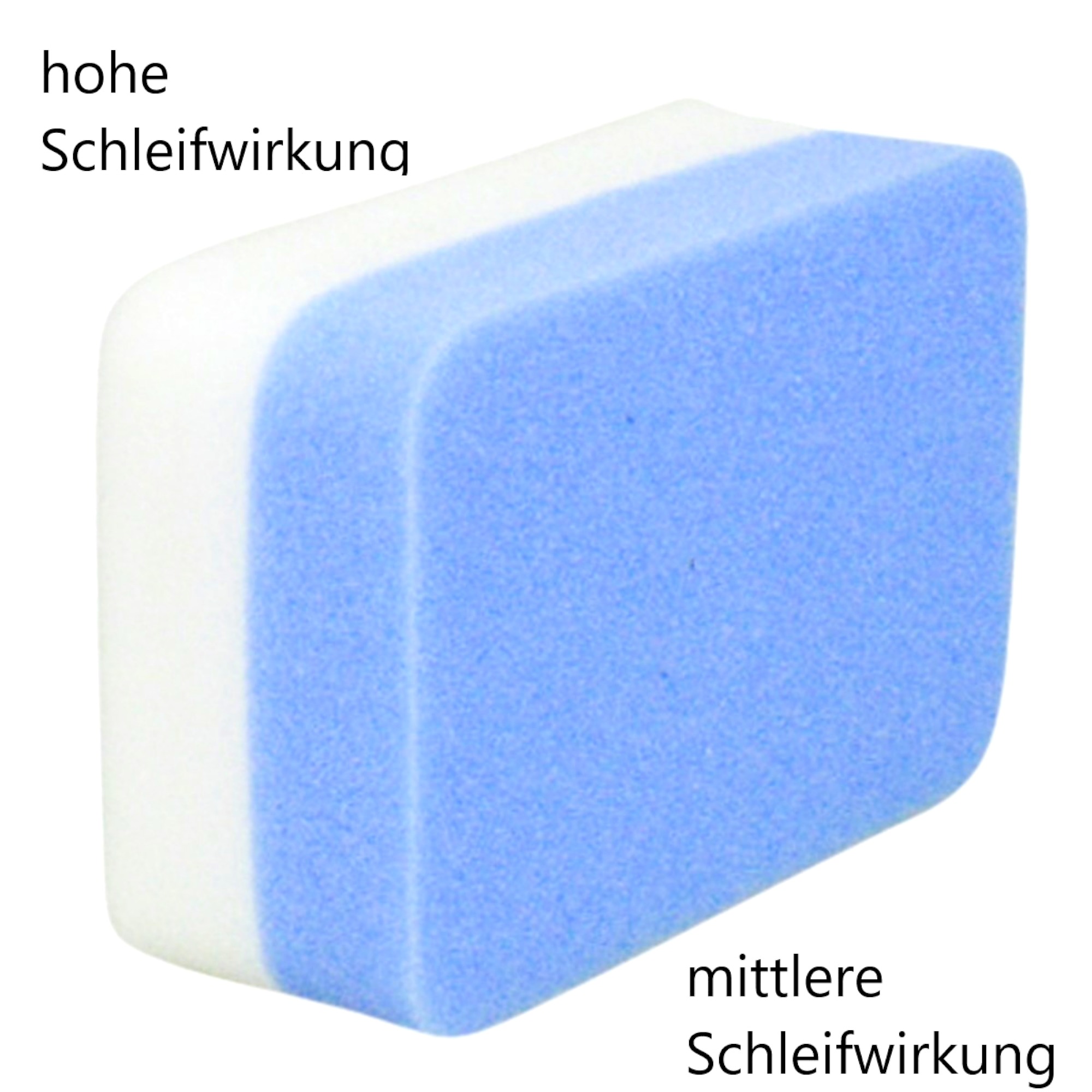 Mittels Applicator: Diesen ebenfalls etwas anfeuchten und mit etwas Druck in kreisenden Bewegungen die zu behandelnde Oberfläche ca. 1 Minute polieren. Auch hier Oberflächen trocknen lassen und anschließend mit dem Tuch nachpolieren.Vorgang ggf. wiederholen, bei größeren Flächen immer in Teilbereichen arbeiten. Nicht auf heiße Oberflächen oder in der Sonne anwenden.