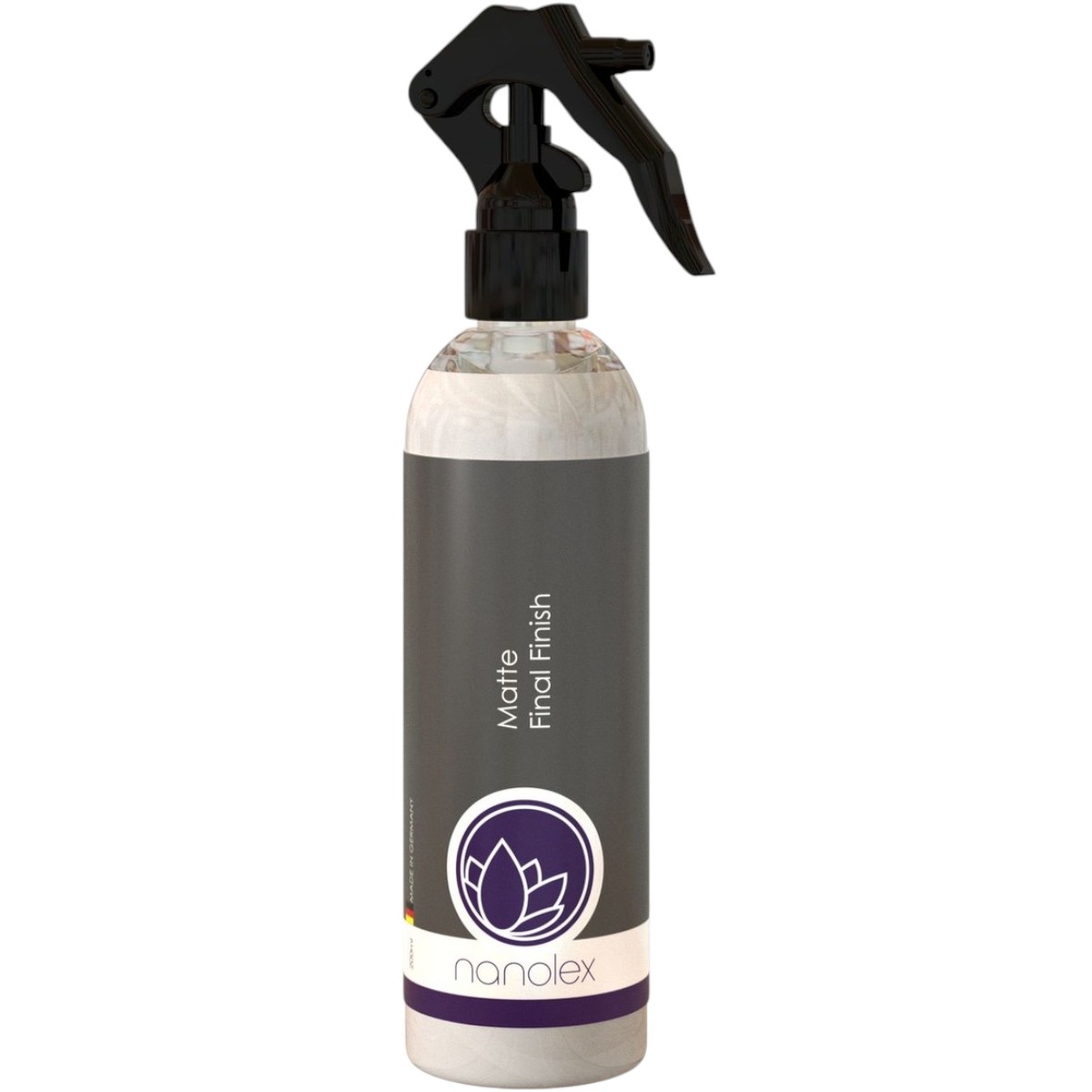 - Sprühen Sie 2–3 Sprühstöße Nanolex Matte Final Finish auf ein sauberes Mikrofasertuch.