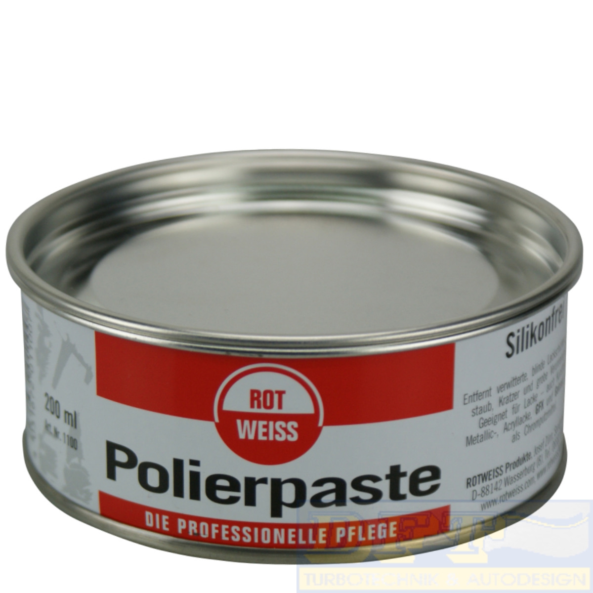 entfernt verwitterte, blinde Lackschichten, Spritznebel, Kratzer und grobe Verunreinigungen, dabei stellt sie den ursprünglichen Glanz wieder her und wirkt zusätzlich gegen verwittern oder Spröde werden. Der Lack erhält seine Elastizität zurück und wird dauerhaft gegen aggressive Umwelteinflüsse geschützt. Insekten oder Teerflecken werden durch die Polierpaste beseitigt. Natürlich ist die ROTWEISS Polierpaste wachs-. fett- und Silikonfrei. Die behandelten Flächen sind überlackierbar. Sie lässt sich auch auf einer nassen Oberfläche anwenden. Geeignet für Lacke, auch Kunstharz-, Metallic,- Acryllacke, GFK und Gelocat. Die Oberflächen sollten anschließend mit einer Hochglanzpolitur poliert werden um ein noch besserer Finish zu erreichen, Danach das Ganze noch mit einem Wachs oder Versiegelung langanhaltend schützen.