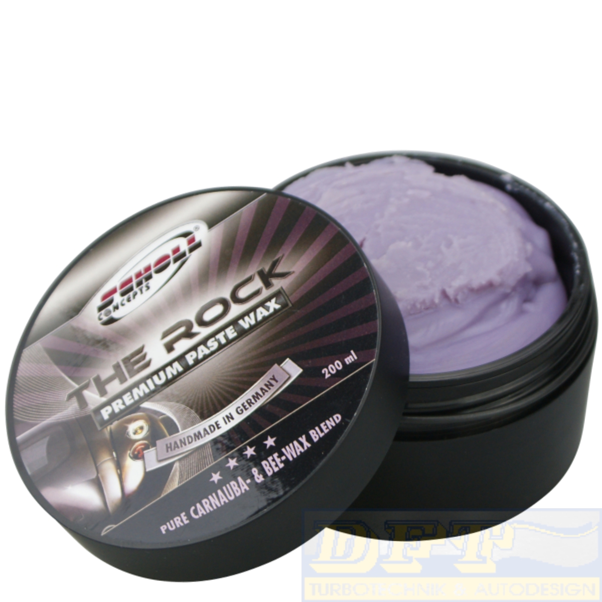 der Premium Wachs aus dem Hause Scholl wird von Hand gefertigt und mit einem Carnaubawachsanteil von über 40g in der 200 g Dose ist er ein Wachs der Spitzenklasse.der wachs hinterlässt eine glasklare Schutzschicht und einen absolut brillanten Spiegelglanz. Die Mischung aus hochwertigen Ölen dem hochreinen brasilianischen Carnaubawachs und anderen natürlich Rohstoffen hinterlassen eine extreme Witterungseigenschaft und überdurchschnittliche Glanzeigenschaften mit sehr gutem Abperlverhalten, den sogenannten Loutus Effekt. Durch die einzigartige Formulierung lässt sich The Rock mit einer hohen Schichtstärke auf die Oberfläche applizieren.Dabei lässt es sich ganz einfach Anwendung und auspolieren.
